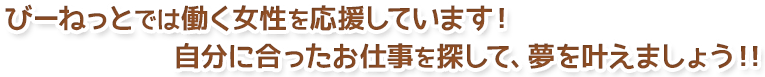 今後とも「びーねっと」を安心してご利用いただき、より質の高い求人情報を提供してまいりますのでご期待ください!!!