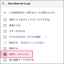 3.From欄で【bee-net.co.jp】と入力後、「フィルタを作成」をクリックします。