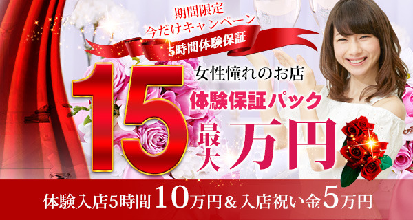 ☆期間限定☆ 【体験保証パック】実施中! 5時間の体験入店で10万円+入店祝い金5万円 【15万円進呈】
