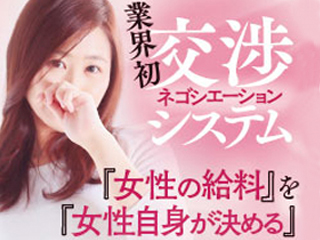 今までの風俗業界で主流だった、面接官(お店)側が決めていた女性の給料などを、女性自身で決めるといった新しい形のお給料システムを導入いたしました。例えば、スポーツ選手の様に本当に実力のある選手は自分で希望の年俸などを代理人を通して、チームに提示して交渉します。つまり、貴女の今までの経験を無駄にしません!