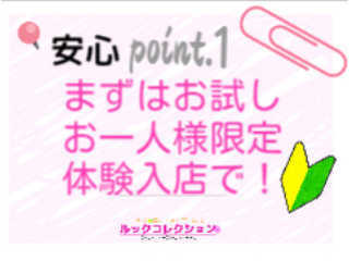 | 特典 | 復活オープン記念キャンペーンにつき只今入店された方 入店祝い金大幅UPにて高待遇募集中! 10万円~20万円以上支給 さらに一日最高10万円の保証もございます! ~50分~ 6500+指名料+オプション+入店祝金 ~65分~ 8000+指名料+オプション+入店祝金 ~給与例~ (65分コース 3人接客の場合) (8000×3)+(3000×3)+オプション+入店祝金 ↓ 38000円以上 !!75%以上のバック率!! 詳細は面接時にご説明致します。 |