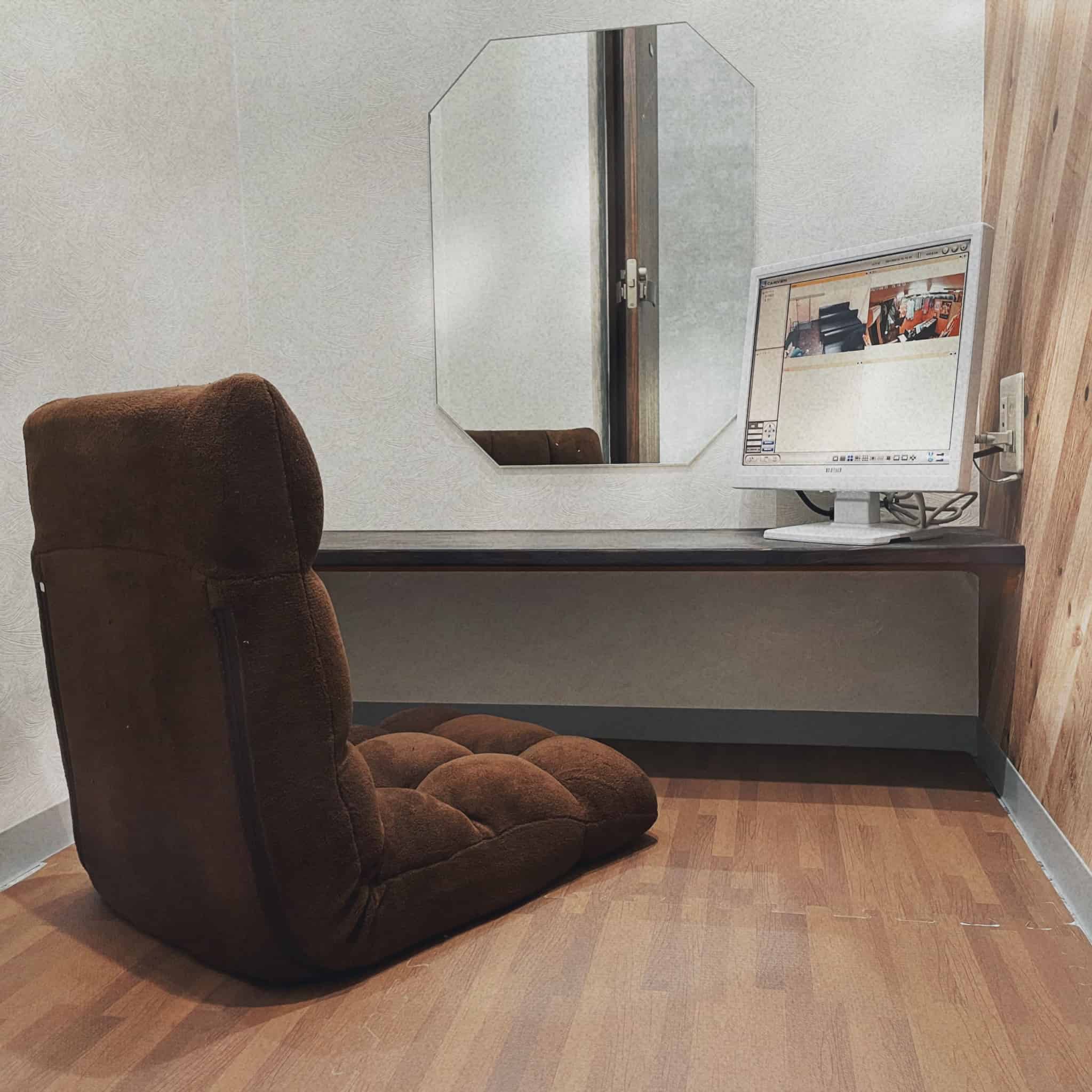 大きな鏡・ブランケット・座椅子・お客様の確認をできるモニター付きもちろんWi-Fiもございますので