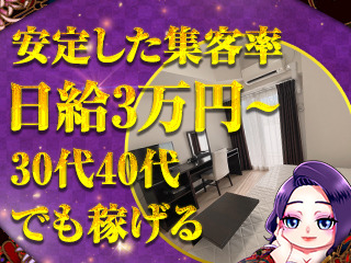 当店では30代~50代の女性が活躍中!大手グループで営業実績も長く1日100組以上の入客数があるのでどんなタイプの女性でもしっかり稼いでいただける環境ですෆプライベート空間の個室待機室にはモニターが設置されておりご来店されたお客様の確認が可能!お仕事道具はお店に用意してあるので手ぶらでの出…