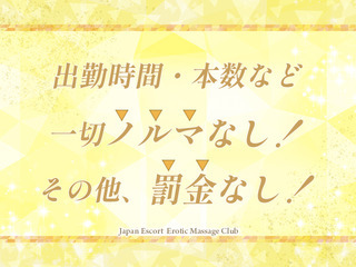 | 特典 | 【Japan Escort Erotic Massage Club4つの待遇】 特典①90分最低17,000円スタート確約 特典②面接交通費2000円支給 特典③一般のエステ店でも通用する資格取得可能 特典④お友達紹介で50,000円プレゼント 在籍も出稼ぎも両方大歓迎です! 綺麗な寮完備! |