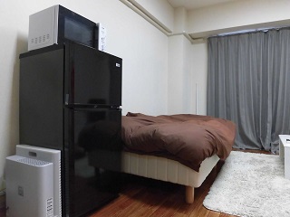お部屋にはベッドやクリーニング済のお布団、シーツ、TV、冷蔵庫、洗濯機、食器類、アメニティなど必要なものはすべて揃っていますので、お着替えの入ったカバンひとつでお越しいただけます。